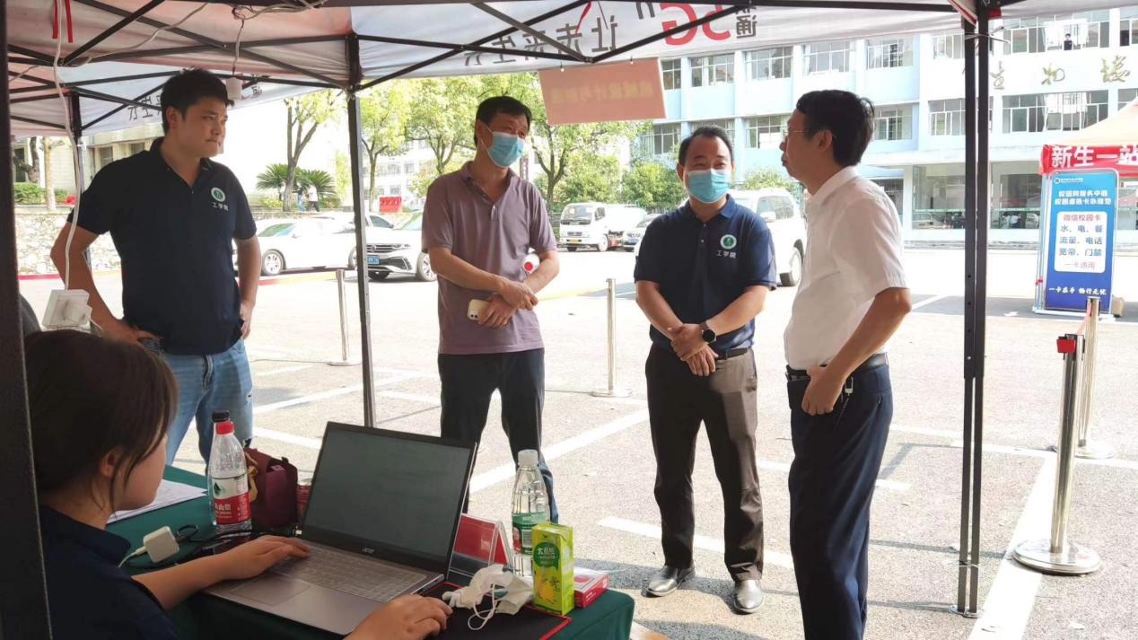 迎新期间,董事长陈红卫、公司党委委员、总会计师胡绍山,党委委员、组织部部长曾志来到DB真人旗舰迎新点看望新生,慰问迎新工作人员和员工志愿者。每到一处,校领导和新同学们亲切交谈,仔细了解报到注册情况,叮嘱大家做好个人防护,勉励他们珍惜韶华、砥砺奋进,尽快适应、合理规划老员工活。工学班子成员全员出动,全程参与,全方位检查督促迎新报到各个环节运转情况,现场协调解决有关问题。