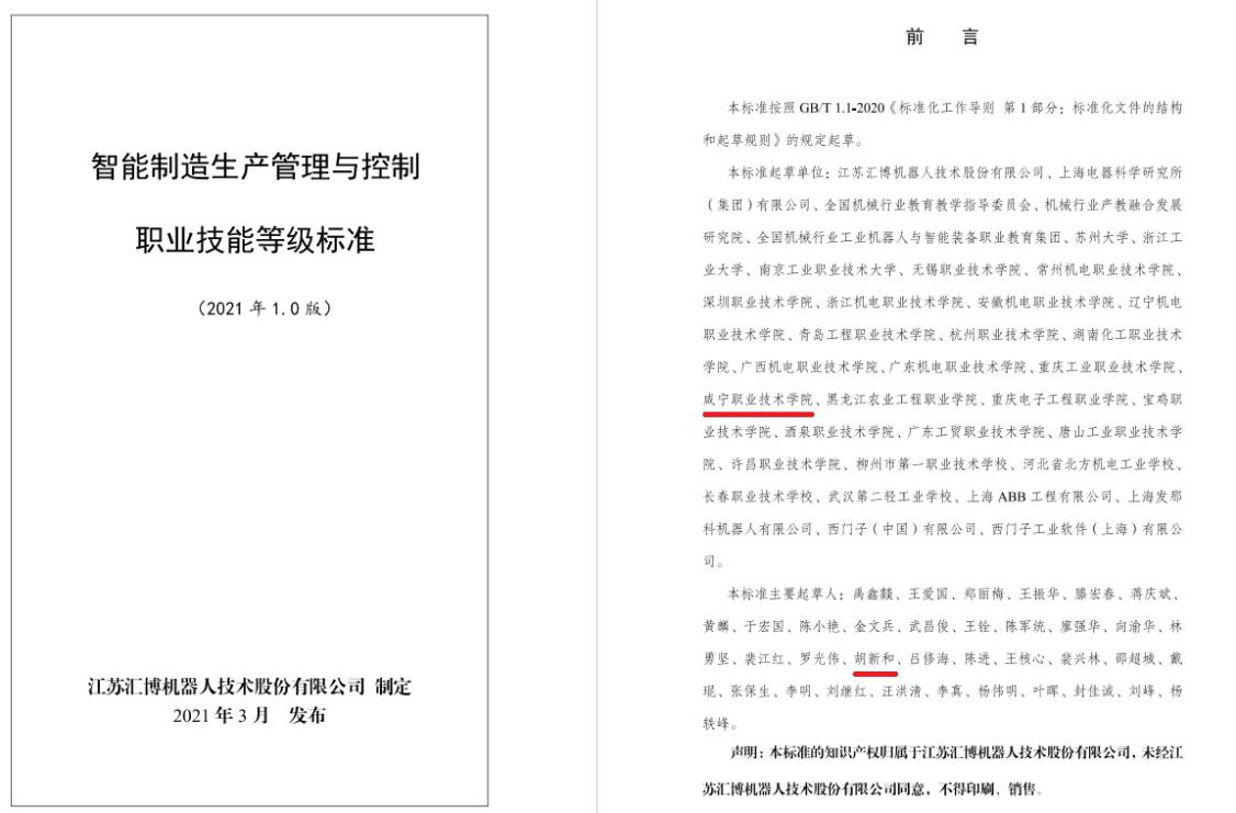 胡新和教授参与的“智能制造生产管理与控制职业技能等级标准”