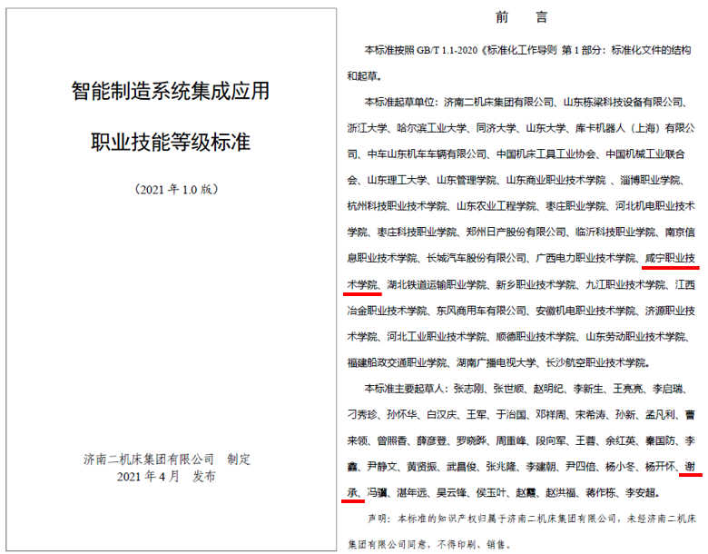 谢承老师参与的“智能制造系统集成应用职业技能等级标准”
