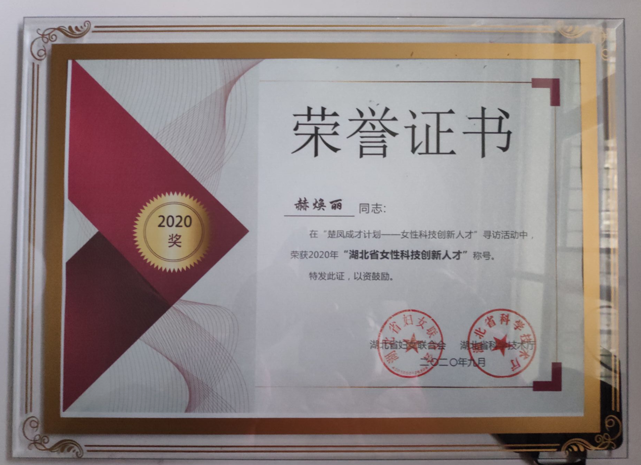 DB真人旗舰教师赫焕丽获“湖北省优秀女性科技创新人才”荣誉称号