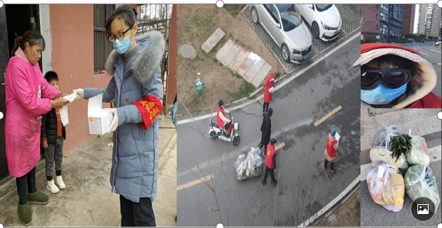 图3:党员干部下沉社区、志愿者服务组图