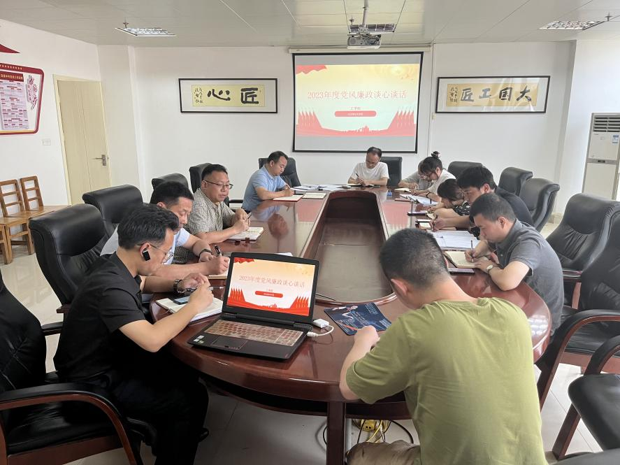5月29日上午,DB真人旗舰在理工楼903会议室组织开展“2023年度党风廉政谈心谈话”工作会。会议分两个阶段开展,第一个阶段由工公司党总支书记柳明珠和经理吴涛分别对全体党员干部进行廉政谈话;第二个阶段由工公司党总支书记柳明珠和经理吴涛分别对重点风险岗位进行一对一谈心谈话。