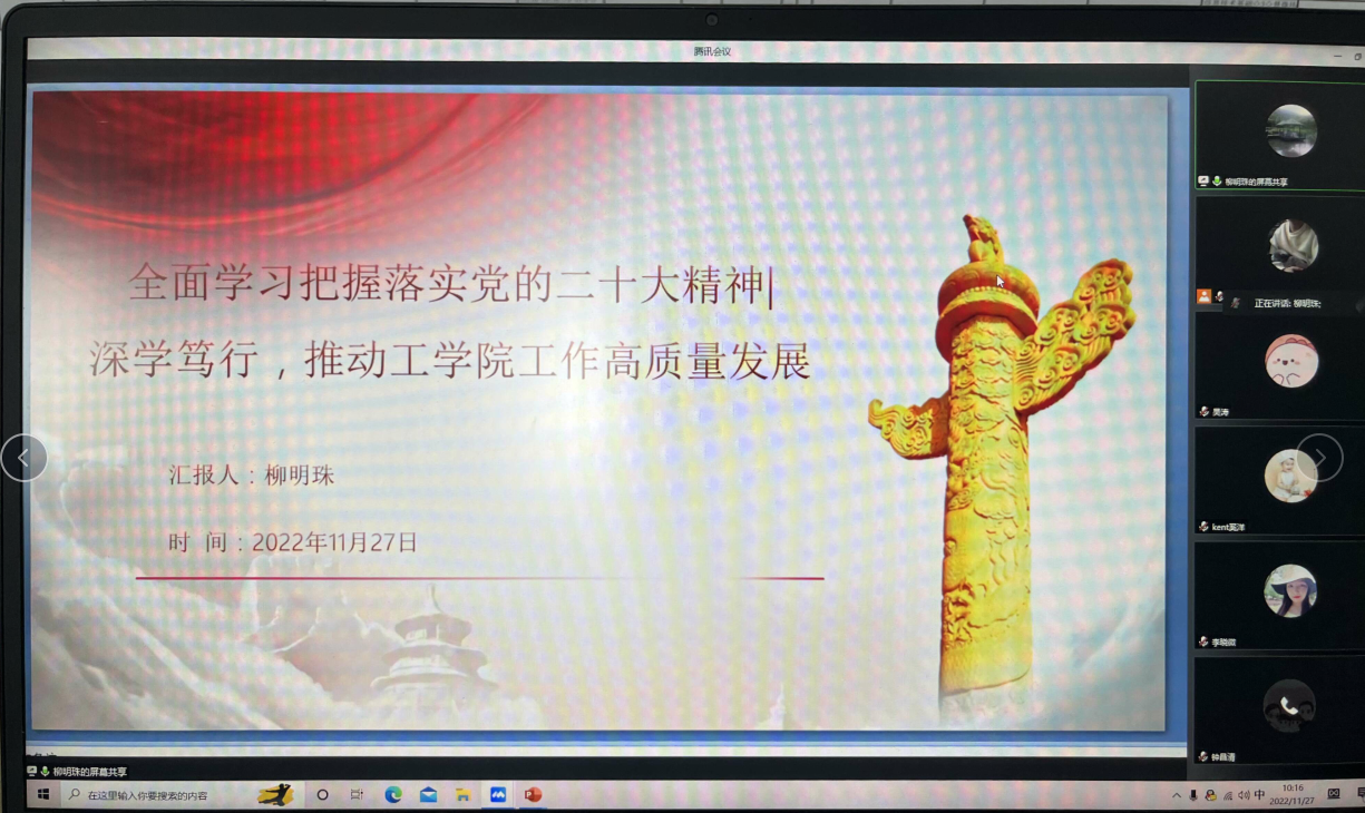 11月27日全天,工公司党总支通过线上会议的形式举办了学习贯彻党的二十大精神专题读书班,会议分三个阶段进行,全体党员及DB真人旗舰经理吴涛参加会议。