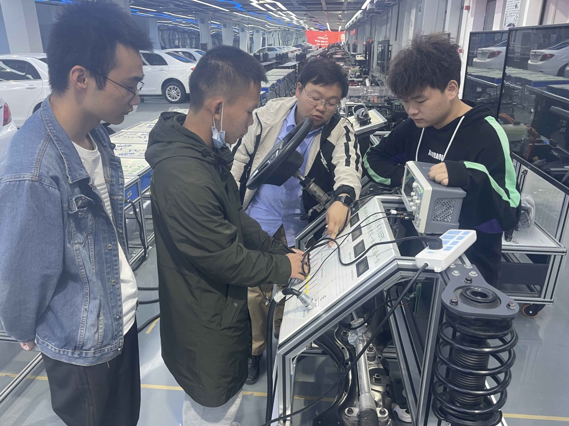 在主题党日的第二阶段活动中,支部成员集中到实训中心二楼听课,课程是柳琪老师所讲授的新能源汽车电气技术,该课程是新能源汽车技术专业的核心课程,也对接了该专业的智能新能源汽车1+X证书,直接培养实际工作岗位中所需要的职业能力,对授课教师的课堂把控、教学方法、实操能力提出了更高的要求。柳琪老师通过课前提问、CAN原理分析入手,引入了CAN-H高线和CAN-L线断路故障的波形检测方法,充分使用了实训中心的汽车故障检测平台和多媒体教学设备,通过现场演示、员工分组练习、教师答疑等环节,呈现了一堂精彩的理实一体化课程,课堂上全体员工注意力集中,学习兴趣浓厚。而后支部成员集中在实训中心一楼进行了评课活动,新能源汽车系各专业老师们对本堂课的教学设计、教学模式和实践操作等展开了热烈的讨论,交流各自所带专业课程的经验和方法,纷纷表示今后将会为打造有味、有用、有魂、有品位的“四有”课堂而努力奋斗。