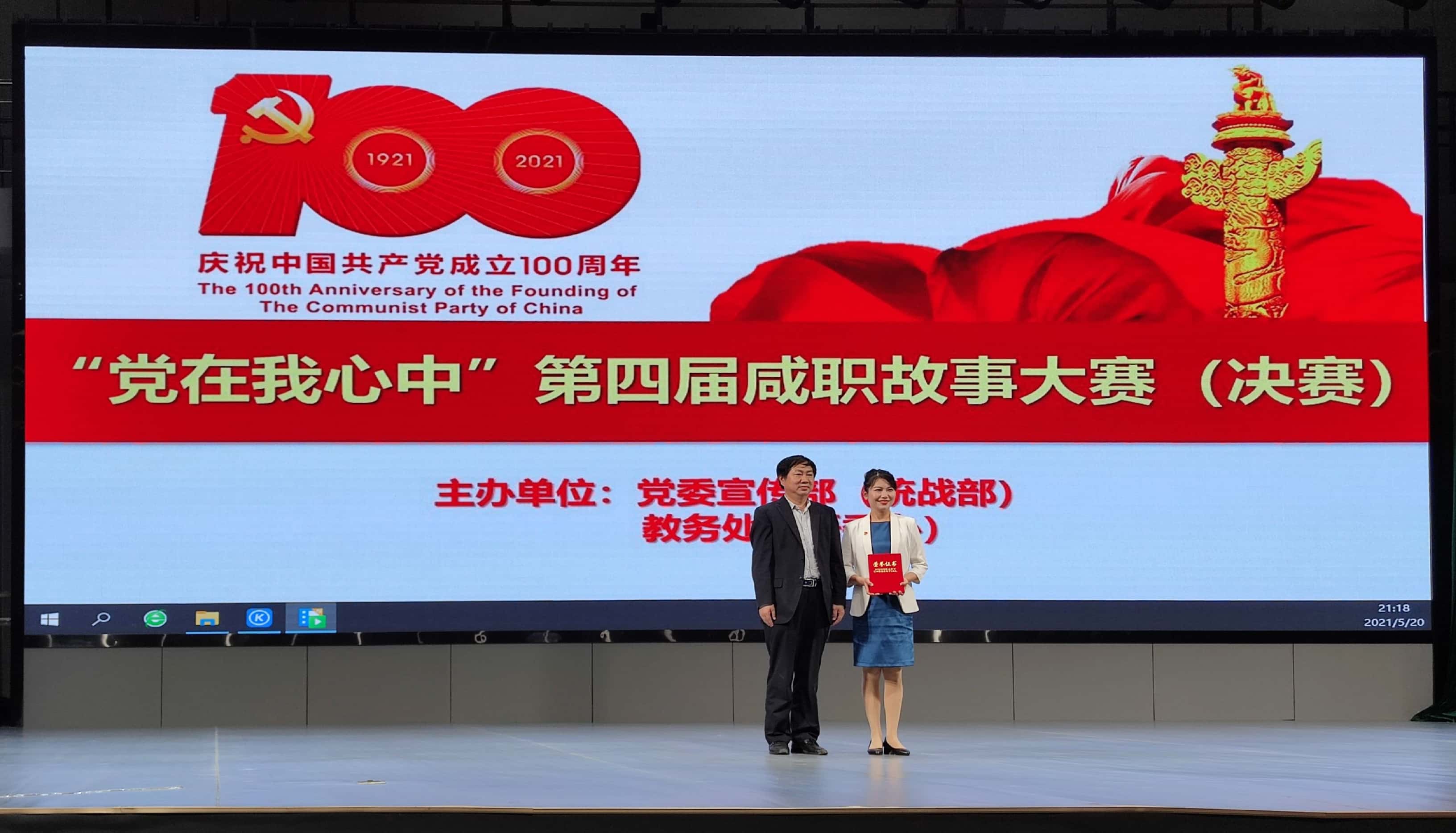 为庆祝中国共产党成立100周年,向中国共产党成立100周年献礼。5月20日晚7:00由党委宣传部和教务处语委办共同举办的“党在我心中”第四届咸职故事大赛(决赛)在科技会堂隆重开展,DB真人旗舰选手何娜老师讲述的题为《迟到的爱》荣获本届大赛第一名。