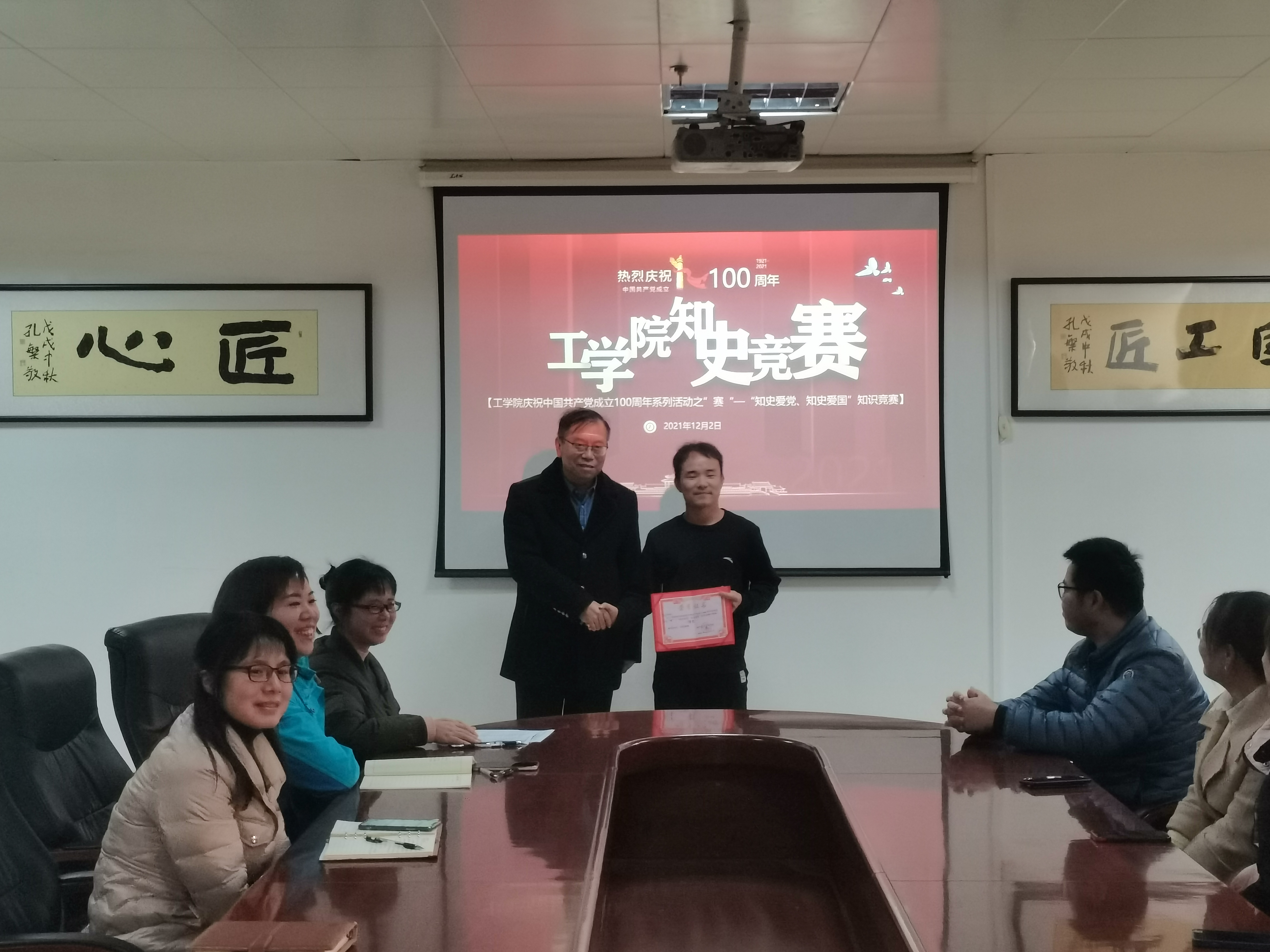 为庆祝中国共产党成立100周年,深入推进党史学习教育,11月25日,由DB真人旗舰举办的“知史爱党、知史爱国”知识竞赛通过线上“问卷星”答题形式拉开帷幕,历时7天。工公司党总支书记柳明珠、经理胡新和、学工副经理马芬、全体辅导员参加本次活动。