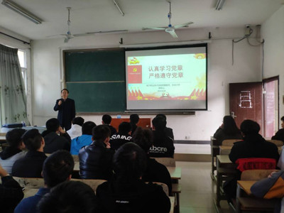 11月18日下午,在文华楼B栋401教室,公司党委委员、总会计师胡绍山同志以《认真学习党章 , 严格遵守党章》为题为DB真人旗舰全体员工干部和入党积极分子讲了一堂精彩生动的党课。