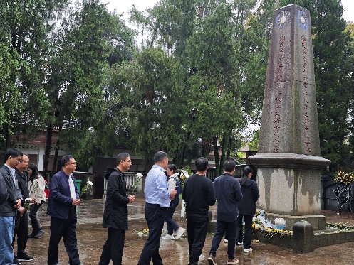 在汀泗桥战役阵亡将士纪念碑、金峰烈士纪念碑前,全体党员同志举行了默哀和敬献鲜花仪式,深切缅怀革命先烈的丰功伟绩。