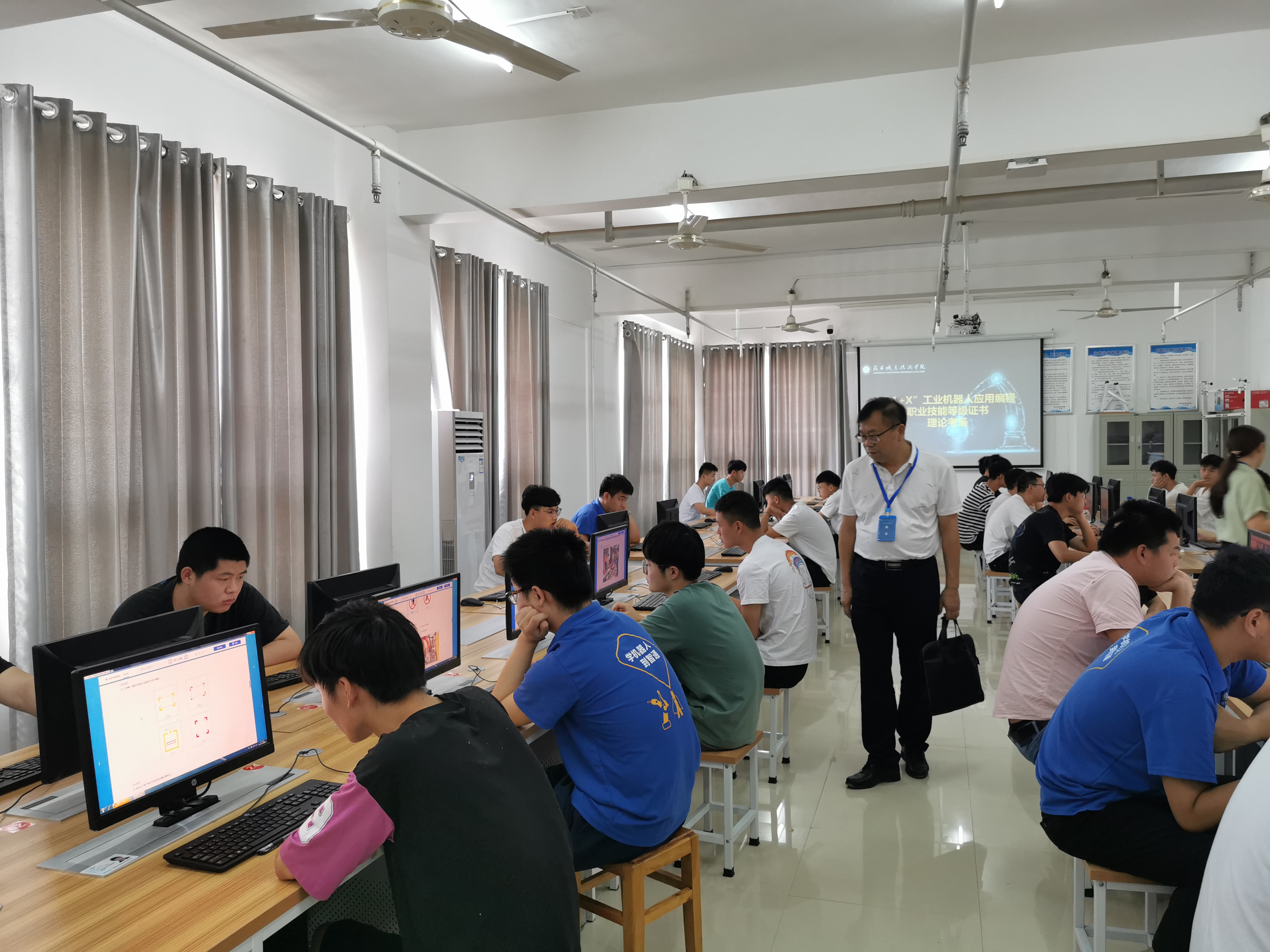 本次考核主要包括理论机试和实操考核两个阶段,19级工业机器人95名员工报名参加本次考核。考前工业机器人专业教师对员工进行了充分的培训和模拟,考核过程中同学们沉着答题,熟练实操,顺利完成了本次考核任务,通过率达75%。