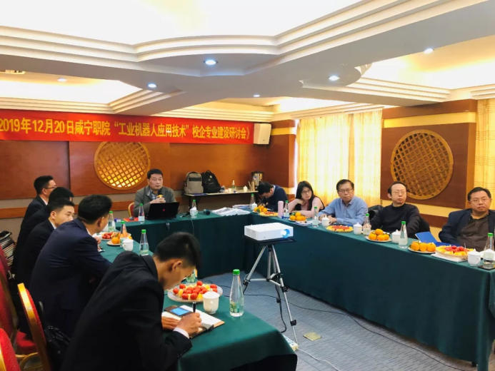 为响应国家发展战略,进一步深化产教融合,推进工业机器人技术专业校企合作工作,第二次工业机器人技术校企专业建设研讨会于2019年12月20日——22日在东莞智通教育集团举行,DB真人旗舰集团总会计师胡绍山教授、教务处吴涛处长、DB真人旗舰经理胡新和教授、工公司党总支书记柳明珠、DB真人旗舰副经理杨彦伟、智能装备系主任谢承、智通集团副总裁、智通教育总经理李纲领、经理黄廷胜及相关工作人员出席了此次研讨会。