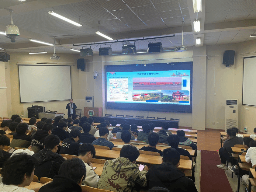 黄建军分别讲述了公司规模、业务领域、企业岗位人才需求、薪资待遇,并为同学们作了职业规划。工学交替的合作模式,员工可通过专业生产实践置换课程学分。既让企业得到稳定的人才储备;也让员工缩短实习时间,尽快完成从员工到专业技术人员的身份转换;同时公司也在校企深度合作中,实现办学质量的提升,实现三赢。