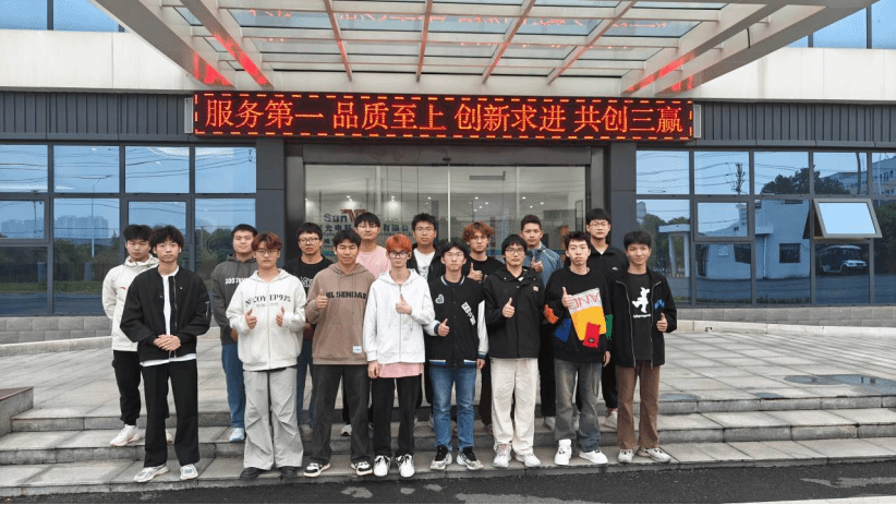 图3 22级机电一体化技术专业班干部参观三赢兴厂区