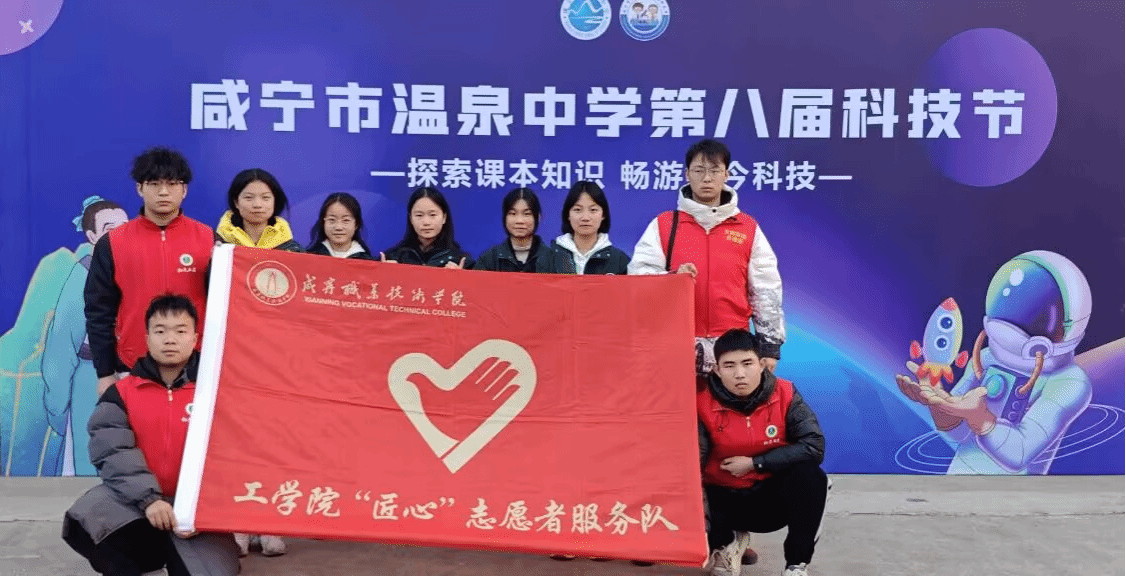 2024 年 12 月 20 日,DB真人旗舰“匠心”志愿服务队联合工业机器人社团、新能源汽车社团,走进咸宁温泉中学第八届科技节。此次活动旨在发挥高校服务社会职能,弘扬工匠精神,为青少年点亮科学梦想,营造爱科学、学科学、用科学的浓厚氛围。