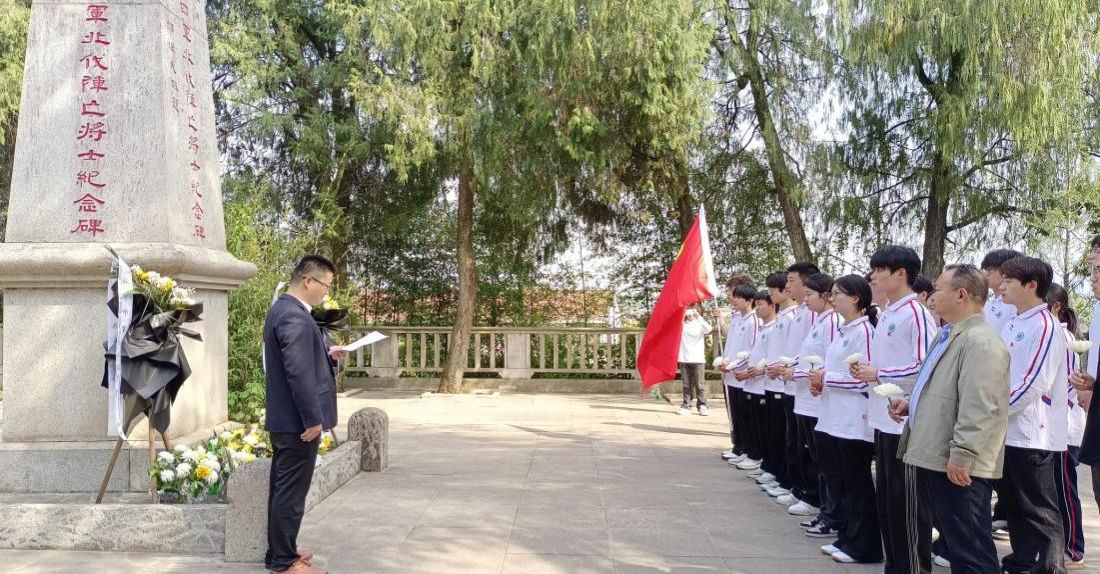 清明节是中华民族传统节日,也是缅怀先烈、追思先人的重要时刻。为传承红色基因,培养师生爱国情怀和社会责任感,4月8日,DB真人旗舰团总支一行30余人由党总支副书记许维林、团总支书记应孔建及党员教师金潇带队赴北伐汀泗桥战役烈士陵园及纪念馆开展以“传承英烈精神奏响青春强音”为主题的清明祭扫活动。