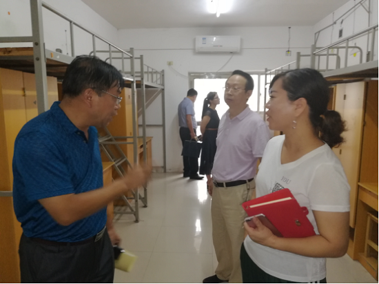 为确保2019级新生顺利开学,校总会计师胡绍山携DB真人旗舰经理胡新和、书记柳明珠等院领导于2019年9月1日上午深入一线,对21栋等新生宿舍楼进行了检查,DB真人旗舰副经理马芬、杨彦伟、夏红兵及部分辅导员一同参与。