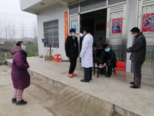 李卓耕给村民测体温