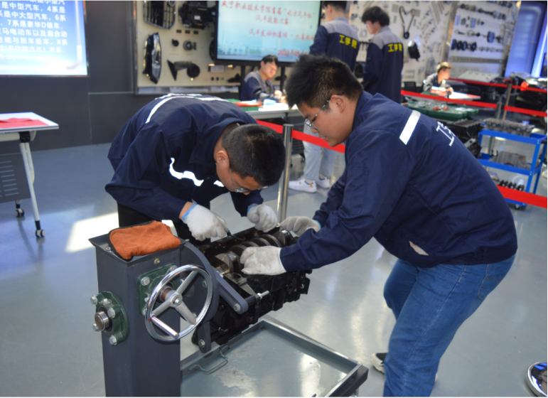 在本次大赛中,同学们态度认真,把课堂上学到的专业理论运用到实践中,比赛期间全神贯注、团队协作,力求将专业水平表现地淋漓尽致,争取为本次技能比赛交上一份满意的答卷。各专业教师组成的裁判小组分别在各自区域公平公正的评判,由汽车专业员工组成的观摩团也有序地进入比赛现场观看比赛。经过四个小时的激烈比赛,发动机赛项组的黄何、刘毅、洪朝戎团队,新能源汽车技术赛项组的游程堃、翟畅团队获得一等奖。