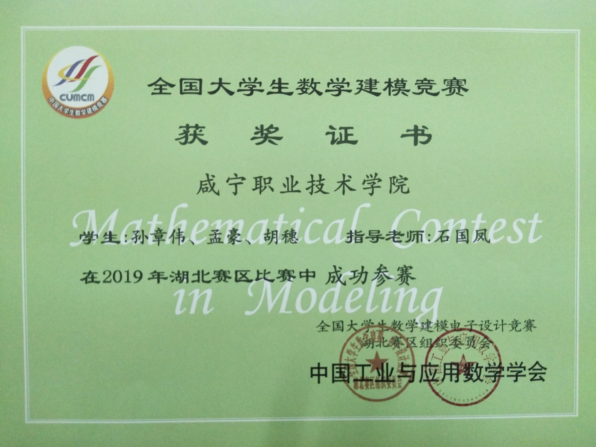 近日,2019年全国老员工数学建模竞赛成绩揭晓,公司喜获湖北赛区一等奖、二等奖、三等奖、成功参赛奖各一个。