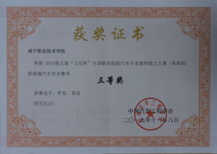 喜报:新能源、新突破——DB真人旗舰教师罗易、黄浩在全国 汽车专业教师能力大赛中荣获三等奖