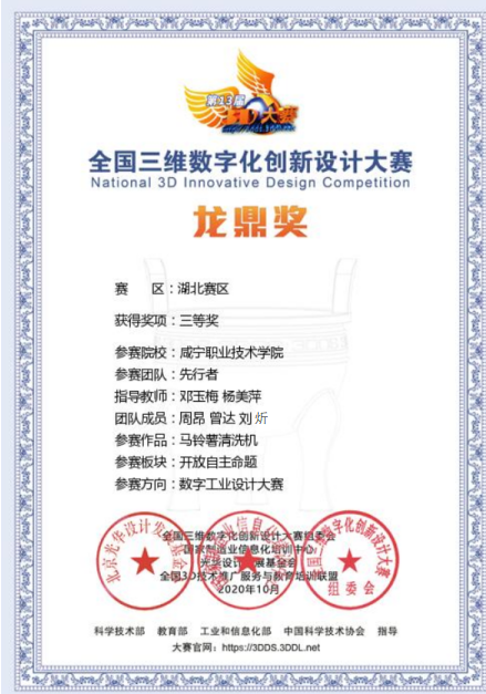 DB真人旗舰员工荣获全国三维数字化创新设计大赛湖北赛区三等奖